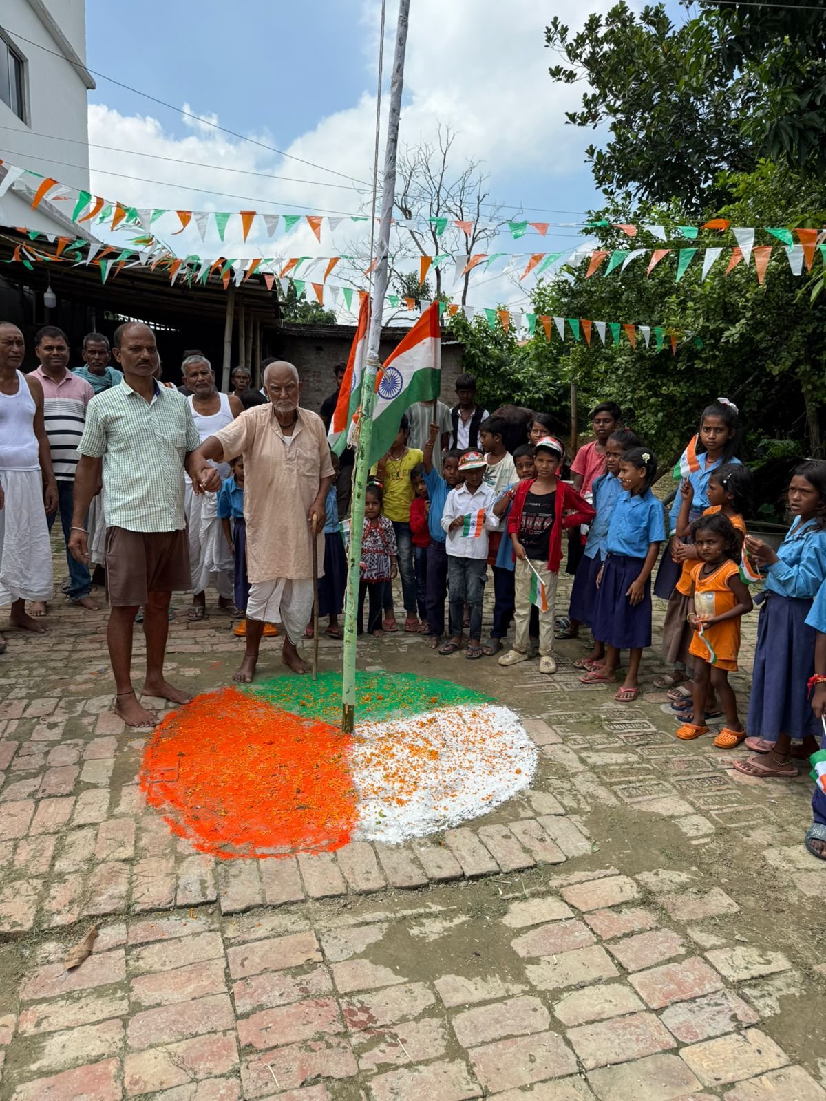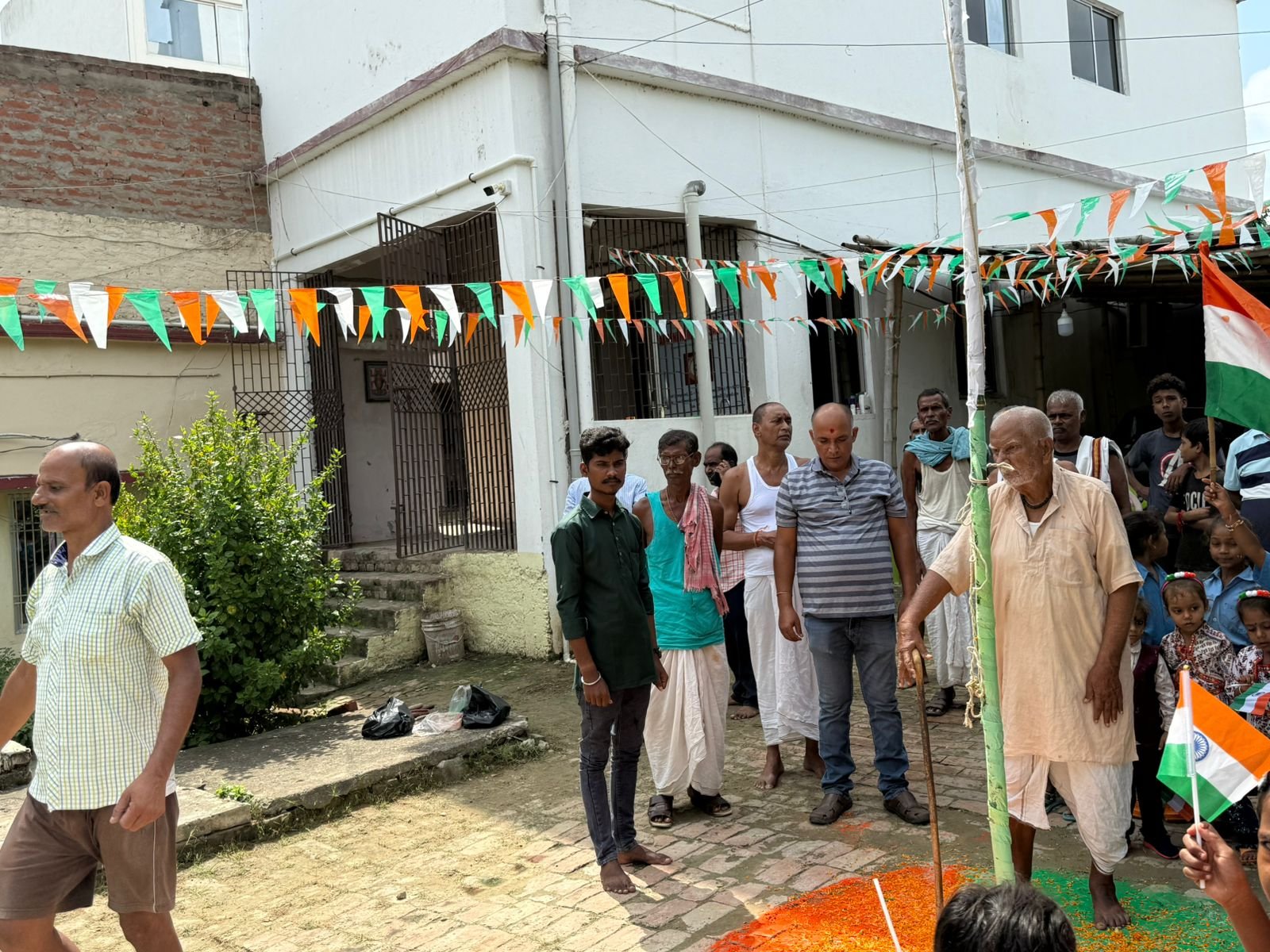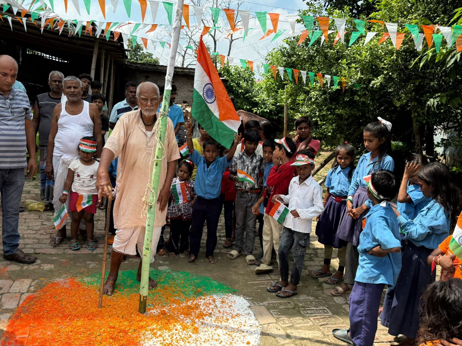 इस अवसर पर हमारे 92 वर्षीय स्वतंत्रता सेनानी, समाजसेवक एवं संस्थान के अभिभावक, आदरणीय श्री गोपाल जी झा ने ध्वजारोहण कर कार्यक्रम का शुभारंभ किया।